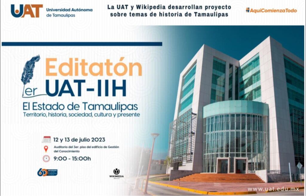 El Instituto de Investigaciones Históricas y Wikimedia México preparan el evento Editatón UAT-IIH, El estado de Tamaulipas: territorio, historia, sociedad, cultura y presente, dirigido a la comunidad educativa y a especialistas en historia.