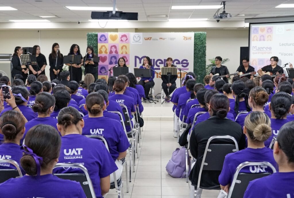 La Universidad Autónoma de Tamaulipas (UAT) llevó a cabo la presentación del recital «Voces Violeta», dirigido a estudiantes universitarias, en un espacio de lecturas y canciones que reflejan el papel de la mujer en la sociedad y su lucha por la equidad.